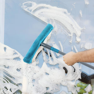 Der 2-in-1 Fensterreiniger mit Wasch und Abziehaufsatz ist das ideale Werkzeug für eine gründliche und mühelose Fensterreinigung. Der praktische Reiniger vereint zwei Funktionen in einem handlichen Gerät: Der waschbare Mikrofaseraufsatz entfernt effektiv Schmutz und Staub von der Fensterscheibe, während der Abzieher für streifenfreie Sauberkeit sorgt. Dank des ausziehbaren Teleskopstabs ist es möglich, die Reinigung auch in den hintersten Winkeln durchzuführen.