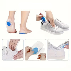 Bequeme Schuheinlagen zur Entlastung Ihrer Fersen. Funktioniert hervorragend bei beiden schmerzhaften Fersensporen. Diese Schuheinlagen sind weich und bequem und passen für alle Grössen. Die Schuheinlage ist ergonomisch geformt und besteht aus einem weichen Silikonmaterial. Geeignet für Schuhgrössen 41–45.