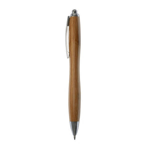 Attraktiv geschwungener Druckkugelschreiber. Er verfügt über ein durchgehendes Gehäuse aus Bambus. Die Spitze und der Clip sind verchromt. Ausgerüstet ist er mit einer Parker-System Mine 1.0 mm, blau schreibend. Länge circa 14 cm Farbe: Holz Farben
