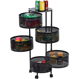 Entdecken Sie unser drehbares 5-Ebenen-Aufbewahrungsregal auf Rollen. Mit fünf grosszügigen Ebenen bietet es Platz für Bücher, Pflanzen und Dekorationen. Die drehbare Funktion ermöglicht einfachen Zugriff, während die Rollen mühelose Mobilität garantieren. Ideal für Wohnzimmer, Büros oder Küchen – ein praktisches und stilvolles Möbelstück für jede Einrichtung! Grösse: H: 94 cm, D: 30 cm, Höhe von den Körben: 14 cm