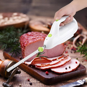 Dieses leistungsstarke Elektromesser erleichtert das Schneiden von Brot, Fleisch, Gefrorenem und mehr. Mit seinen scharfen, rostfreien Edelstahlklingen gleitet es mühelos durch verschiedene Lebensmittel und sorgt für saubere, gleichmässige Schnitte – perfekt für Küche, Grillabende oder festliche Anlässe.