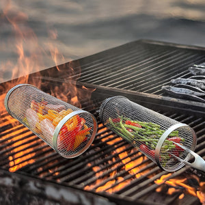 Der rollbare Grillkorb aus rostfreiem Edelstahl ist langlebig und praktisch. Er bietet Platz für verschiedene Lebensmittel und sorgt für gleichmässiges Grillen. Wiederverwendbar und leicht zu reinigen, ist er ideal für regelmässige Grillabende im Freien. Grösse: Klein: 20.5 x 9 cm Gross: 30.5 x 10 cm