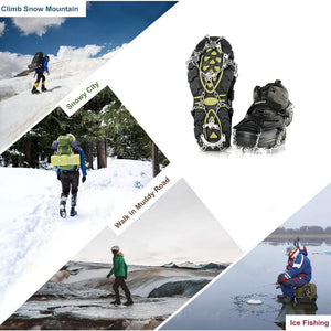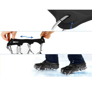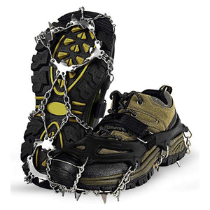 Die Steigeisen für Wanderschuhe bieten optimalen Halt auf eisigen oder verschneiten Wegen. Hergestellt aus hochfestem Stahl und ausgestattet mit 18 Zacken, sorgen sie für maximalen Grip bei winterlichen Wanderungen oder Bergtouren. Das elastische Gummiband ermöglicht eine schnelle und einfache Befestigung an verschiedensten Schuhmodellen, während das robuste Design Stabilität und Langlebigkeit garantiert. Ideal für alle Outdoor-Enthusiasten, die auch im Winter sicher unterwegs sein wollen. Die Steigeisen werden als Paar geliefert!