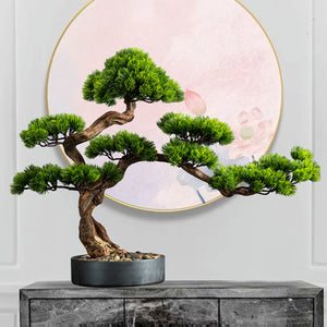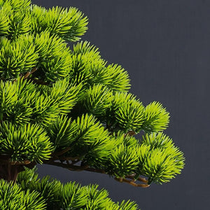 Bringen Sie fernöstliche Harmonie und zeitlose Eleganz in Ihr Zuhause: Dieser kunstvoll gefertigte künstliche Bonsai überzeugt durch seine natürliche Wuchsform, den elegant geschwungenen Stamm und die dichten, leuchtend grünen Nadeln. Er verleiht jedem Raum eine Atmosphäre von Ruhe, Balance und Ästhetik – ganz ohne Pflegeaufwand. Der Bonsai wird mit passenden Dekosteinen geliefert, die stilvoll im Topf arrangiert werden können und das Gesamtbild harmonisch abrunden. Grösse: 63 x 72 cm