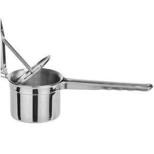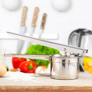 Die Kartoffelpresse ist das ideale Küchenwerkzeug für müheloses Zerkleinern von gekochten Kartoffeln, Gemüse oder Obst. Dank ihres ergonomischen Designs und der stabilen Edelstahlkonstruktion ermöglicht sie eine einfache Handhabung und gleichmässige Ergebnisse – perfekt für cremiges Kartoffelpüree, Spätzleteig oder Babynahrung.