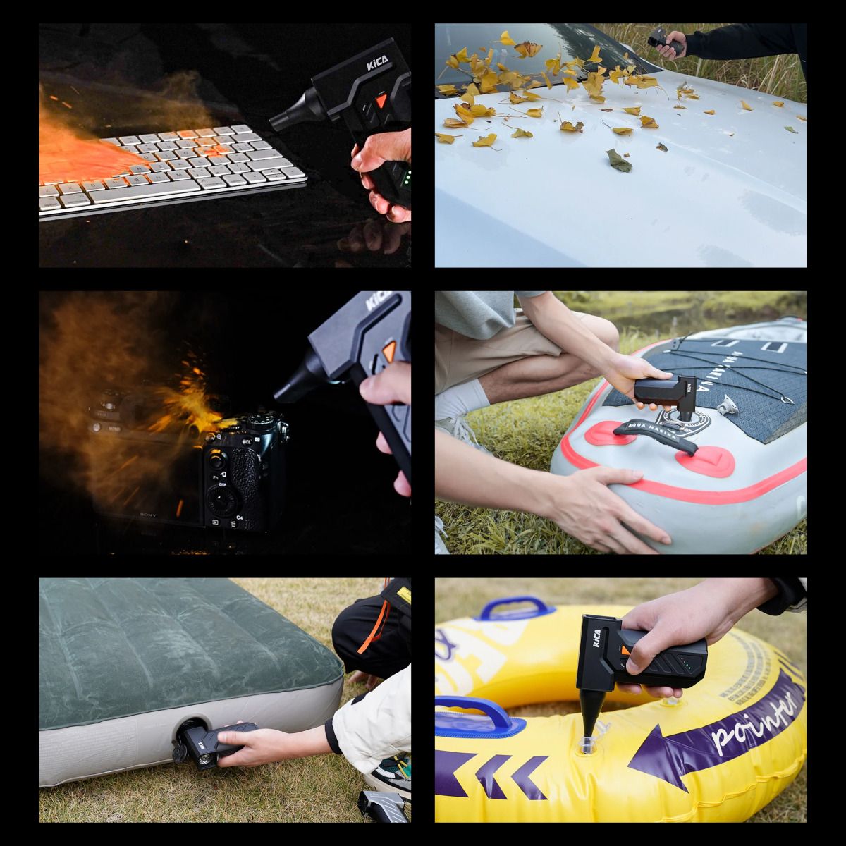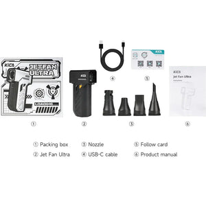 Der KiCA Jet Fan Ultra ist ein ultrakompakter, leistungsstarker Gebläseventilator, der mit bis zu 178km/h Windgeschwindigkeit und 185g Schubkraft überzeugt. Mit seinem futuristischen Design, einem hochwertigen Gehäuse aus Aluminiumlegierung und einem Gewicht von nur 327g ist er nicht nur stylisch, sondern auch besonders handlich und mobil einsetzbar. Der präzise einstellbare Luftstrom lässt sich stufenlos regulieren und über die Turbo-Taste jederzeit auf maximale Leistung steigern. Ein integriertes LED-Licht an Vorder- und Rückseite sorgt für optimale Sicht bei der Arbeit, selbst bei schlechten Lichtverhältnissen. Mit einer Motordrehzahl von bis zu 130'000 Umdrehungen pro Minute und langer Akkulaufzeit ist der Jet Fan Ultra ein vielseitiger Begleiter für Reinigung, Outdoor, Fotografie und vieles mehr. Der KiCA Jet Fan Ultra ist ein echtes Multitalent. Ob zu Hause, im Auto, in der Werkstatt oder auf Reisen, er entfernt Staub und Krümel mühelos, selbst aus schwer erreichbaren Bereichen wie Lüftungsschlitzen, Tastaturen oder Kamerafächern. Mit dem beiliegenden Pinselaufsatz lassen sich empfindliche Oberflächen wie Objektive besonders schonend reinigen. Gleichzeitig eignet sich das Gerät ideal zum Aufblasen oder Entlüften von Luftmatratzen, Schwimmhilfen oder Campingausrüstung. Der magnetische Schutzfilter deckt die Ansaugöffnung ab und sorgt für eine sichere und saubere Anwendung, auch bei feinen Partikeln. Dank 18 Watt Schnellladung über USB-C ist das Gerät rund 30 Prozent schneller wieder einsatzbereit als bei herkömmlichem Laden. Der KiCA Jet Fan Ultra kombiniert Power, Vielseitigkeit und Mobilität in einem kompakten Format und ist die perfekte Lösung für alle, die zuverlässige Leistung bei maximaler Flexibilität suchen.
