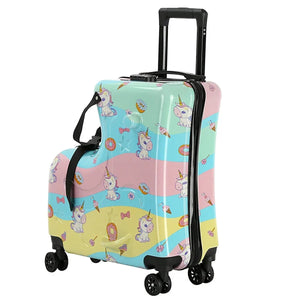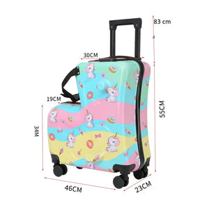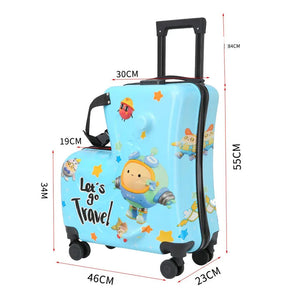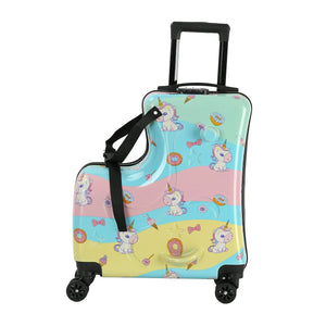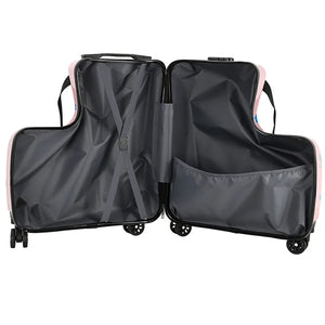 Der Kinder-Reisekoffer mit Sitzfunktion ist der perfekte Begleiter für kleine Abenteurer auf Reisen. Er überzeugt durch seine praktische Kombination aus Koffer und Sitzmöglichkeit und sorgt unterwegs für Komfort und Spass. Dank der integrierten Sitzfläche können sich Kinder zwischendurch bequem ausruhen oder gezogen werden. Die stabile Hartschale schützt den Inhalt zuverlässig, während die vier leichtgängigen Rollen ein müheloses Manövrieren ermöglichen. Der ausziehbare Teleskopgriff sorgt für eine angenehme Handhabung, zusätzlich erleichtert ein Tragegurt das Ziehen oder Tragen.