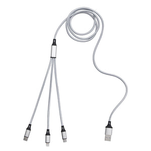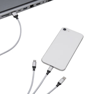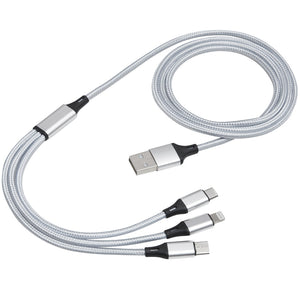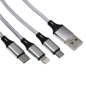 Ladekabel CHARGE DISTANCE: zum Aufladen von elektronischen Geräten, inkl. 3 Ladesteckern (USB Typ C, Micro-USB und Lightning), Länge ca. 120 cm.