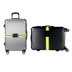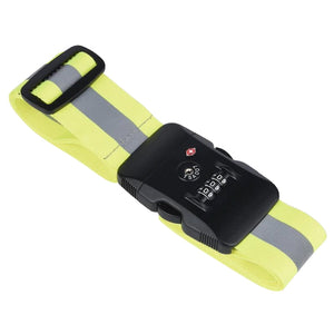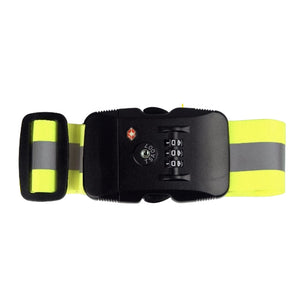 Die Breite vom Nylonband beträgt 5 cm und es hat eine Länge bis maximal 162 cm. Die Länge ist verstellbar. Damit können Koffer und Taschen mit grösserem Umfang gesichert werden. Mittig auf dem Nylonband ist durchgehender, hochreflektierender Streifen positioniert. Der Klickverschluss ist robust und stabil. Ausserdem ist der Gurt mit einem Schloss versehen, so dass Ihr Koffer 100%ig sicher ist.