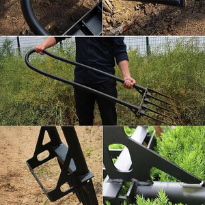 Stabile Doppelgrabgabel zur Bodenlockerung und schonenden Bearbeitung von Beeten. Mit zwei gegenüberliegenden Gabelteilen für effizientes Arbeiten ohne Umgraben. Ideal für biologisches Gärtnern, verbessert die Bodenstruktur und erhält das Bodenleben. Länge: 117 cm