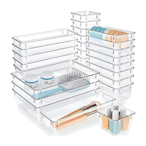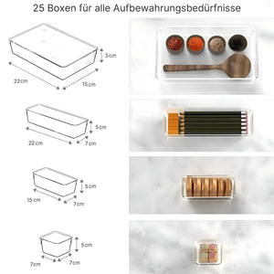 Bringen Sie Ordnung in Ihr Zuhause mit unserem praktischen 25-teiligen Schubladen-Organizer-Set! Dieses vielseitige Set bietet verschiedene Fächer in unterschiedlichen Grössen, ideal für Besteck, Büromaterial oder Kosmetikartikel. Dank der verschiedenen Grössen können Sie jede Schublade nach Ihren Wünschen organisieren, im Set sind 4 verschiedene Grössen enthalten. Mit seinem kompakten Design passt es in fast jede Schublade und hilft Ihnen, den vorhandenen Platz optimal zu nutzen.