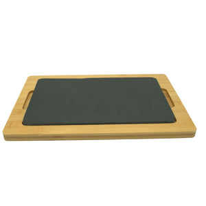 Entdecken Sie dieses hochwertige Servierbrett als perfekte Ergänzung für Ihre Küche und Ihr Esszimmer! Aus robustem Bambus gefertigt, bietet dieses Servierbrett nicht nur eine stilvolle Präsentationsfläche, sondern ist auch äusserst funktional. Durch die integrierte Schieferplatte ist das Servierbrett leicht zu reinigen und somit langlebig. Grösse: 23 x 34 cm.