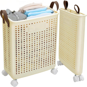 Praktische Aufbewahrung für Ihre Wäsche. Der faltbare Wäschekorb mit Rädern ist die perfekte Lösung für alle, die eine mobile und platzsparende Aufbewahrung für ihre Wäsche suchen. Ob im Badezimmer, Schlafzimmer oder auf dem Weg zum Waschsalon. Dieser Wäschekorb macht das Sammeln und Transportieren von Kleidung kinderleicht. Grösse (mit Räder): 50 x 20 x 37 cm